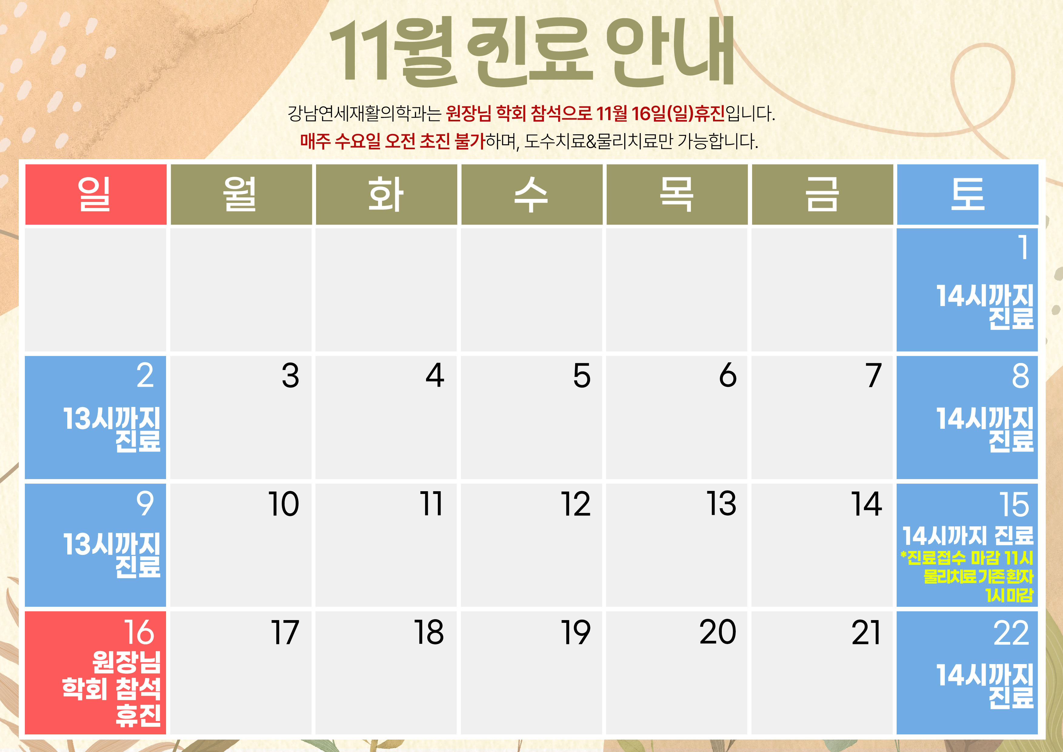 | 토요일 | 09:00 - 14:00(접수마감 13:00) |